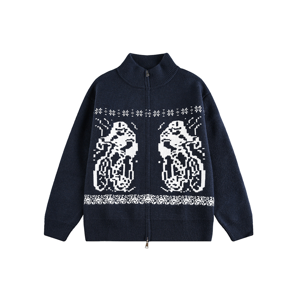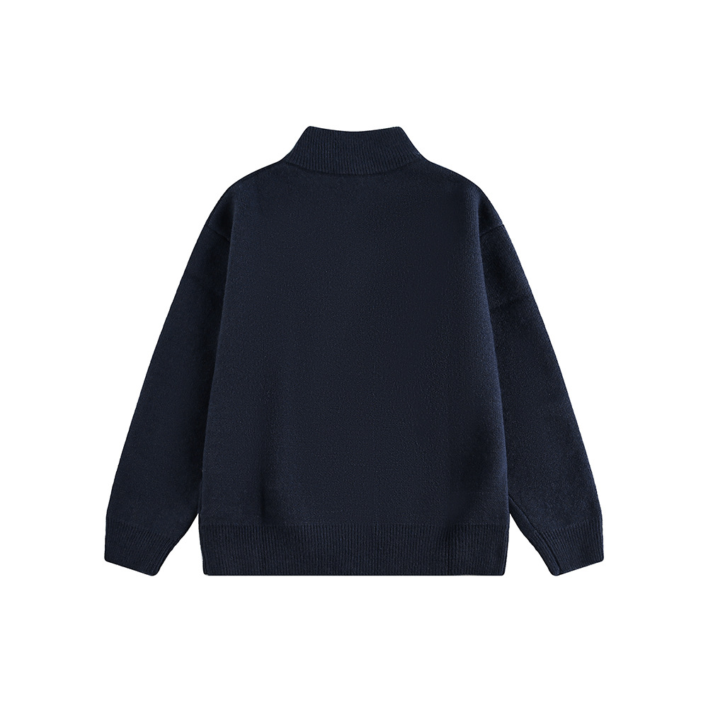 Small Quantity Apparel Supplier Men's Long Sleeve Knitted Sweater Stand-up Collar Cardigan Embroidered Sweater